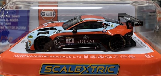 The Aston Martin GT3 Vantage storms onto your Scalextric track dressed in motorsport’s most revered colours: Gulf blue and orange. Bound for the 2025 Bathurst 12 Hours, this razor-sharp GT3 machine combines the legendary Gulf livery with the Vantage’s aggressive stance, creating a model that celebrates endurance racing heritage with contemporary flair.